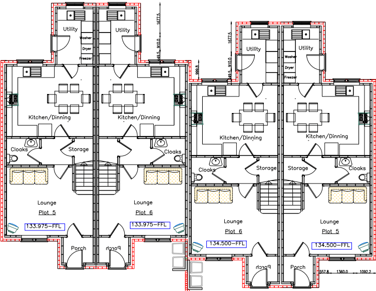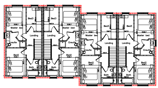 Phase 3 consist of 3 houses, Plots 5-7, again in a terrace arrangement, consisting of 2 x 3beds identical in layout to Plots 1-4, and 1 x 4 bed with a second bathroom and integral garage.