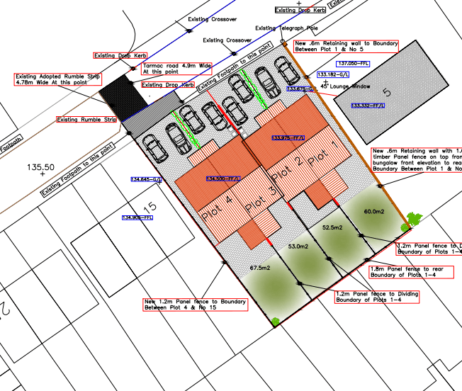 The site is split, with 4 houses on the lower plot near to the Redgate Pub and 7 houses on the plots at the top of the road on land next to Redgate House.